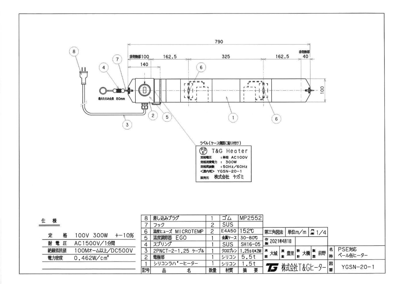 | 外装 | ガラスクロス補強シリコンシート | 寸法 | 790mm(長さ)x100mm(幅) |
